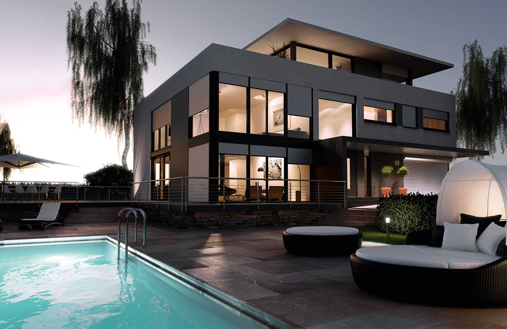 Dank optimal aufeinander abgestimmter Farben, filigraner Rollladenstäbe und vielfältigen Designs lassen sich heroal Rollladensysteme harmonisch in die Architektur integrieren.