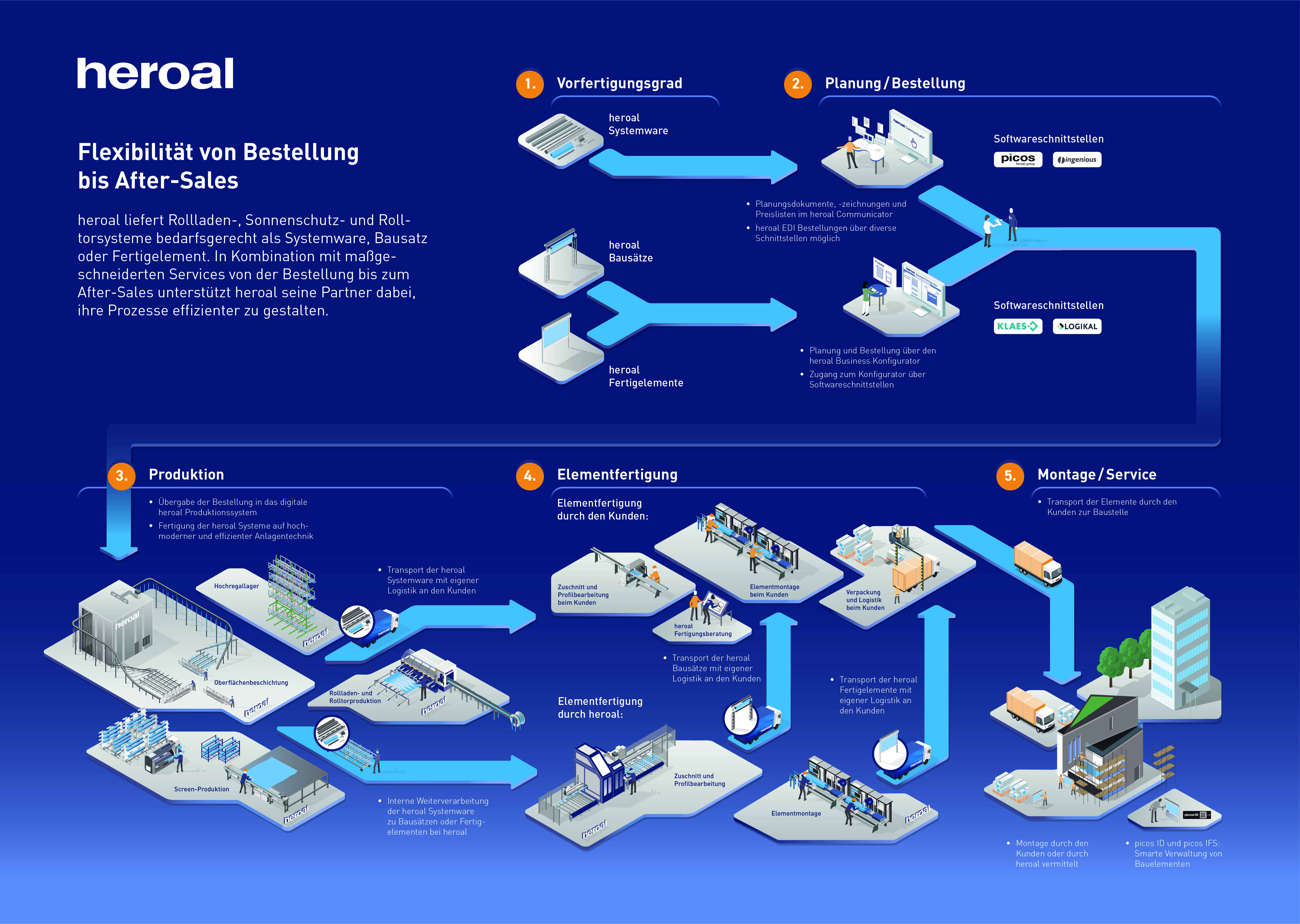 Für maximale Flexibilität und eine optimale Anpassung an betriebliche Anforderungen bietet heroal in den Produktbereichen Rollläden, Sonnenschutz und Rolltore die Möglichkeit, zwischen Systemware, Bausätzen und heroal Ready Fertigelementen zu wählen. Das erlaubt heroal Fachpartnern, besonders schnell und einfach auf kurzfristige Anfragen und aktuelle Marktanforderungen (z. B. Schwankungen in der Auslastung) zu reagieren und Verkaufschancen zu nutzen. Dabei lassen sich die Systeme sowohl mit weiteren heroal Aluminium-Systemlösungen, als auch mit Systemen aus Materialien wie Kunststoff, Holz oder Holz-Aluminium kombinieren.